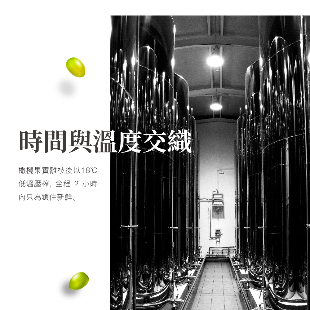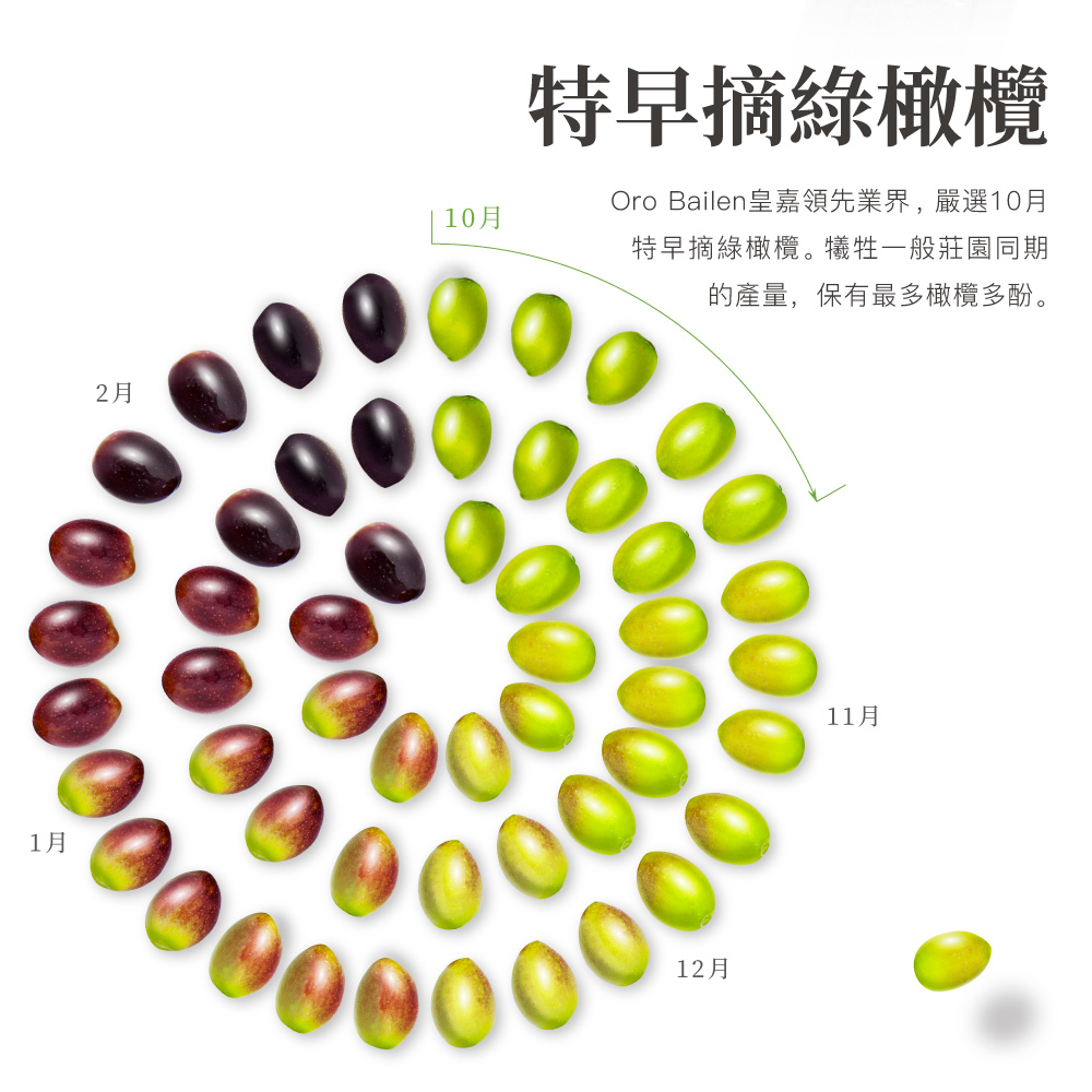 嚴選每年十月特早摘青綠橄欖,果實離枝兩小時內即完成第一道冷壓榨取,全程低溫原裝進口、倉儲,完整保留豐富橄欖多酚與營養。油體如果汁般澄澈清透、爽口不膩,特殊風味令人難忘,不僅是西班牙王室唯一指定御用的特級初榨橄欖油,更連年獲獎、深受眾多米其林主廚喜愛。
