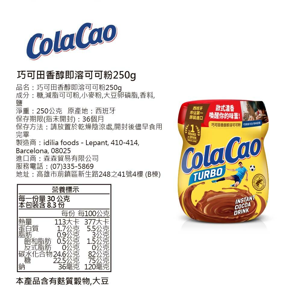 【森食良品】ColaCao 巧可田香醇即溶可可粉250g