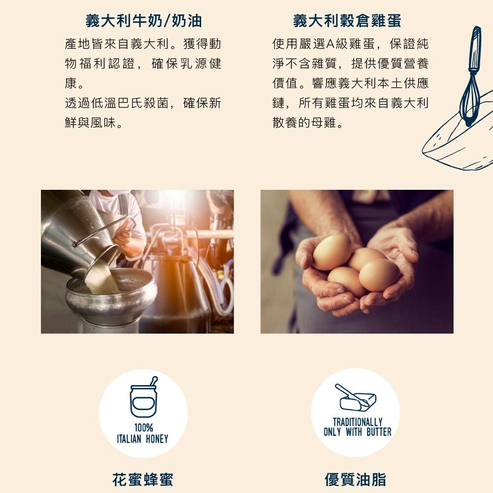 ◆嚴選義大利進口鮮奶及穀倉蛋