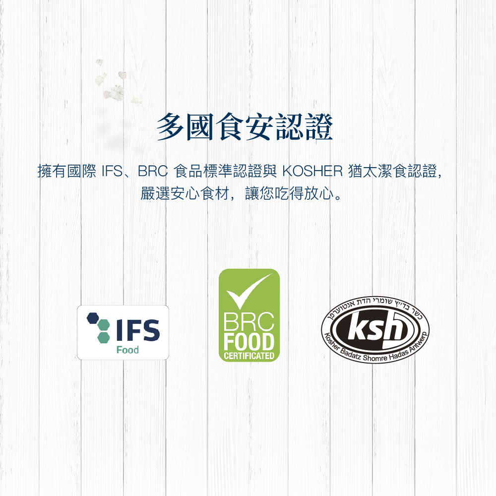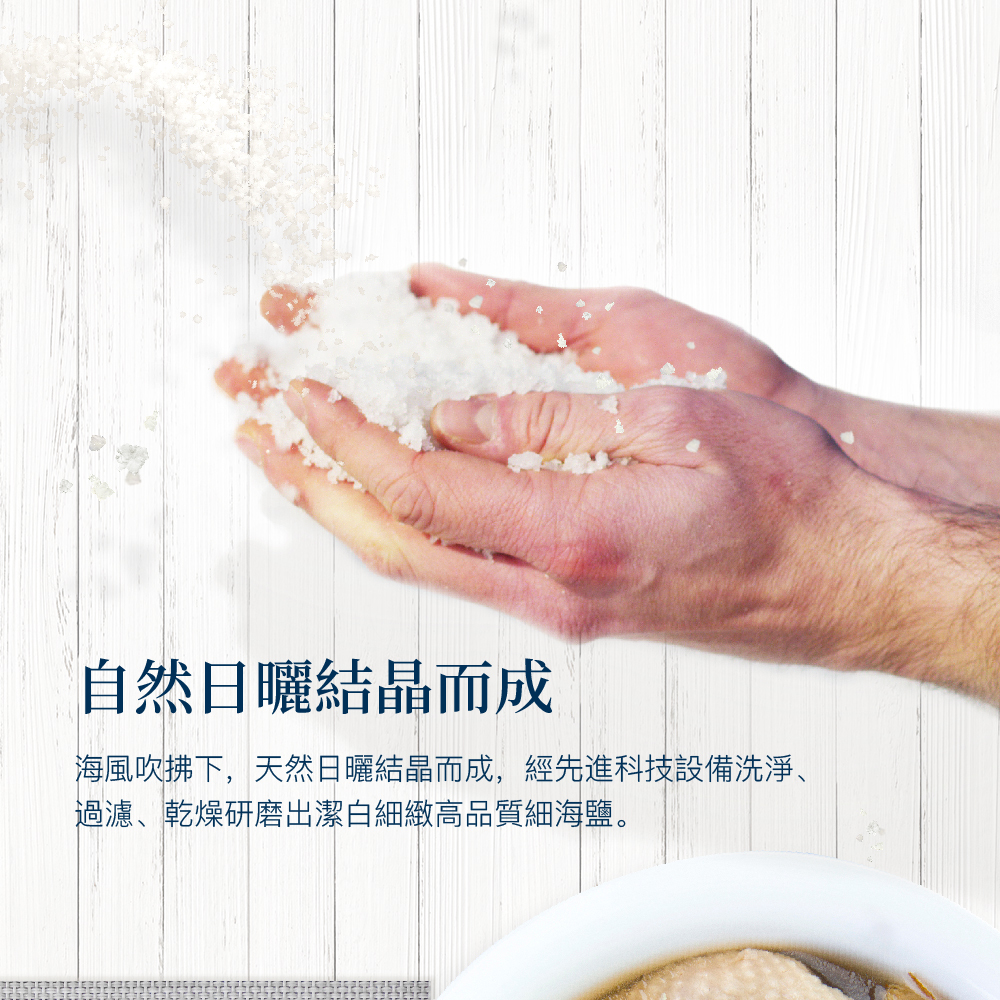 .比利時海鹽職人悉心手採.富含海洋微量礦物質.口感圓潤不死鹹,尾韻回甘風味迷人.無額外加碘,平衡外食營養攝取.獲猶太潔食與多項國際食品認證