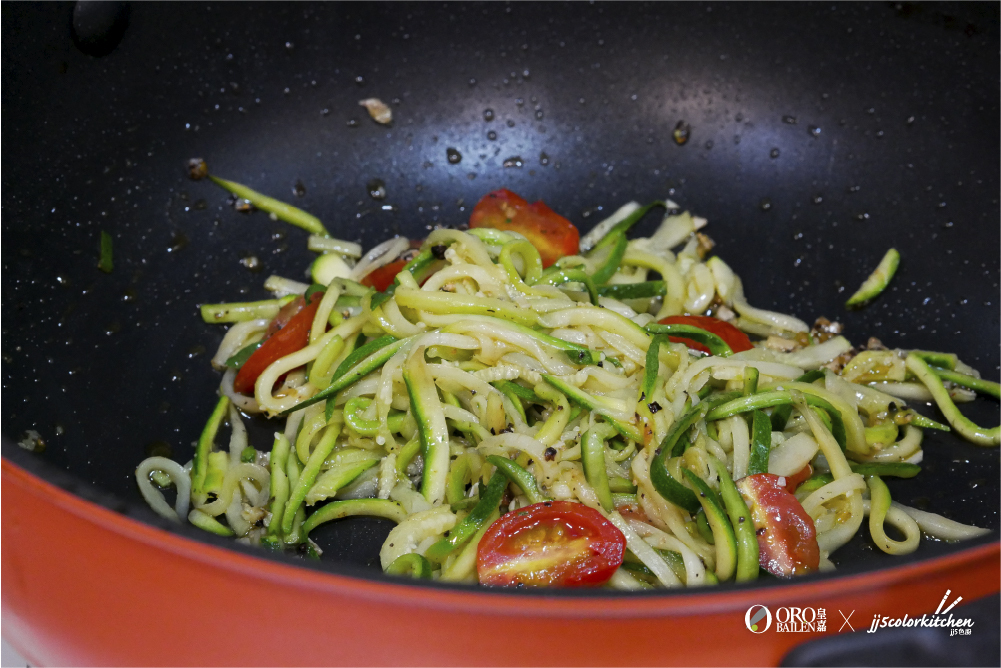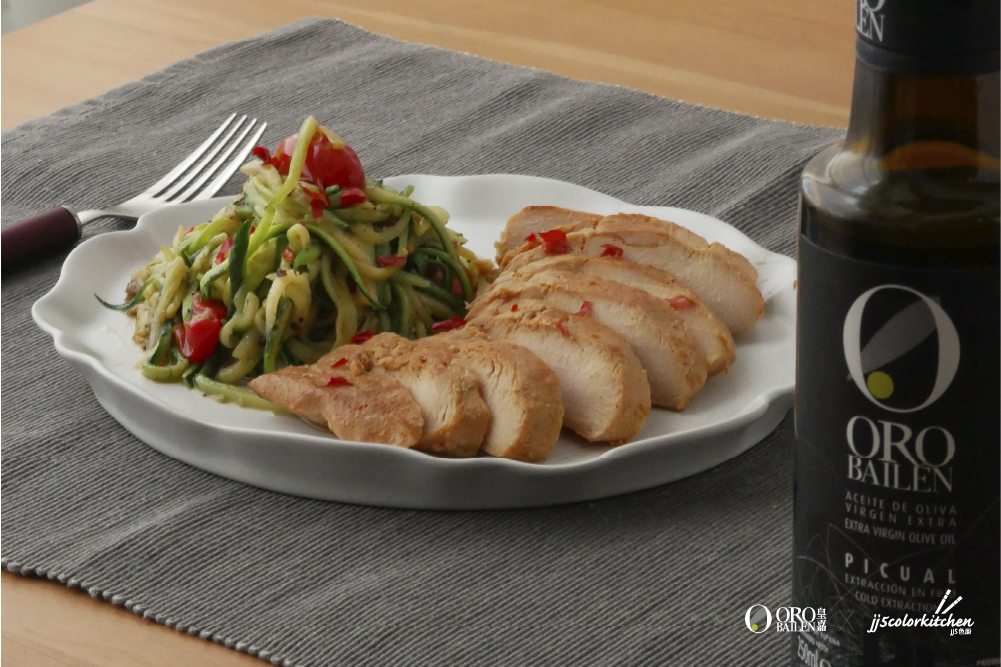 快來試試JJ老師的減醣料理「蒜香雞胸櫛瓜麵」。