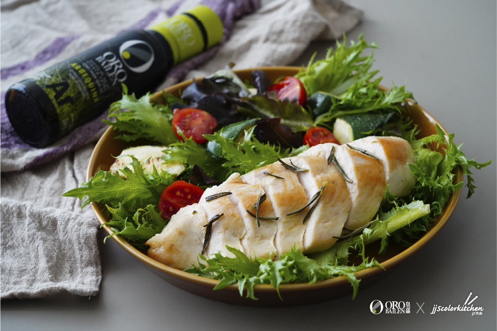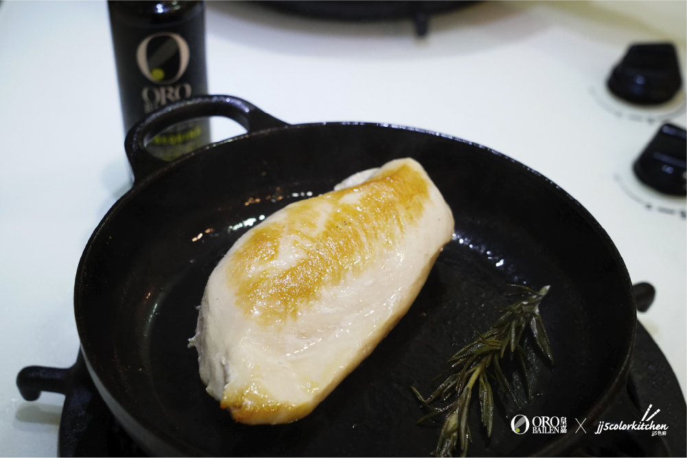 在醃製雞胸⾁過程中,再加入一些橄欖油,不但能讓雞胸⾁更先多汁,還能散發獨特橄欖果香。