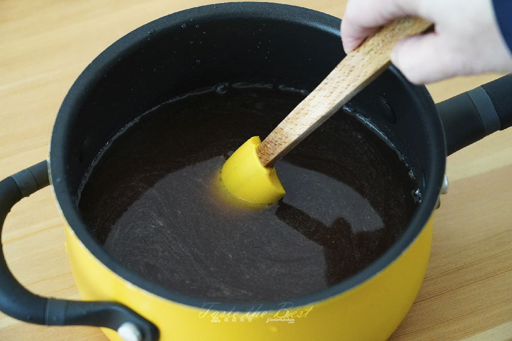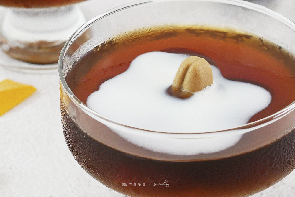 咬一口咖啡果凍完成,可加入奶精拌著吃。