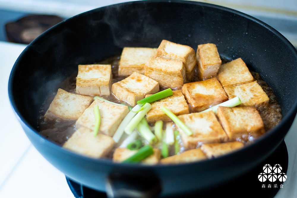 煎至外酥內軟的豆腐,吸滿湯汁的醬油香和蔥香,很快速又下飯的一道菜色,非常適合外宿族,或辛苦的上班族媽媽們!
