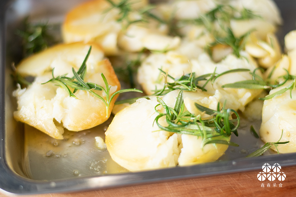 迷人的迷迭香香氣加上橄欖油的淡雅清香,佐以烤馬鈴薯,誘人的香氣,立即擄獲全家大小的胃。