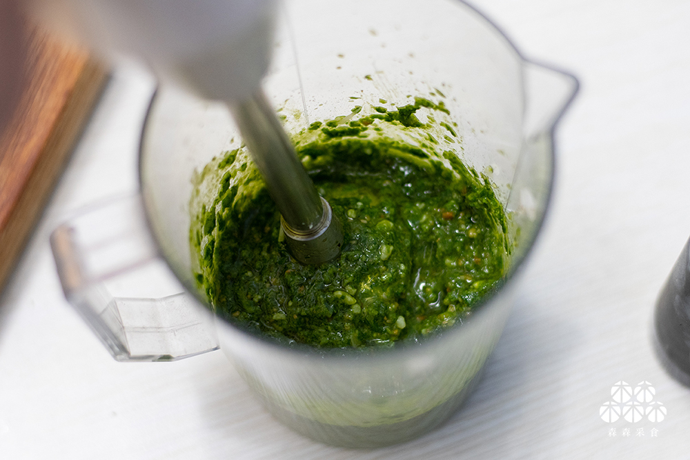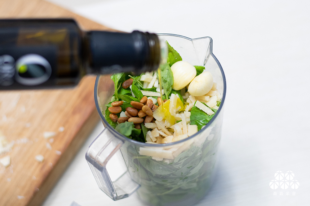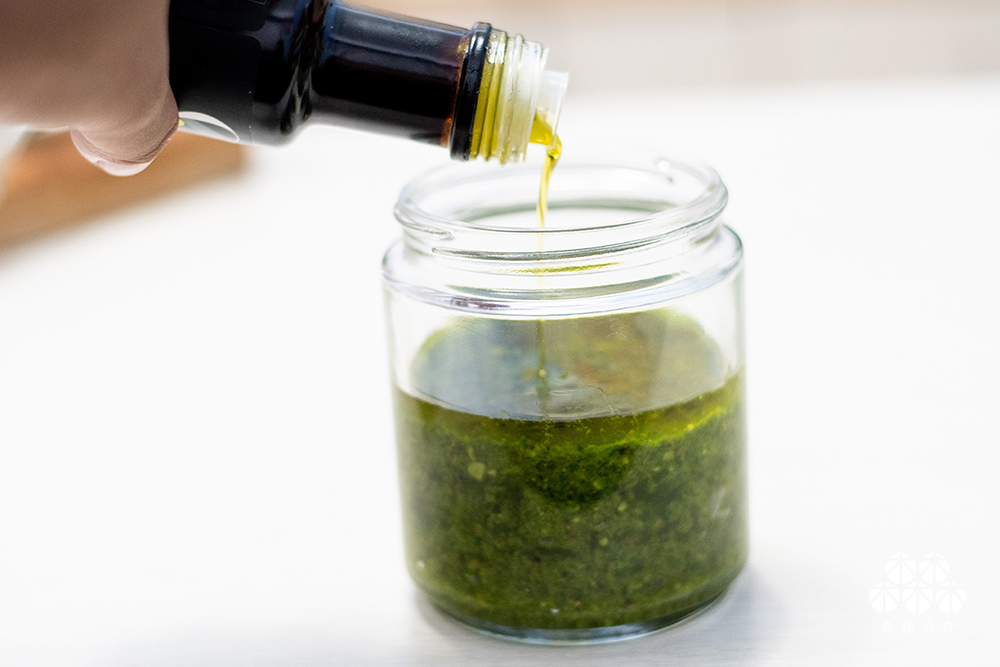 百搭的青醬在許多料理都可以見到它的身影,迷人的青醬氣味,一聞就讓人胃口大開,青醬搭配冷壓初榨橄欖油,吃的美味也吃得健康。