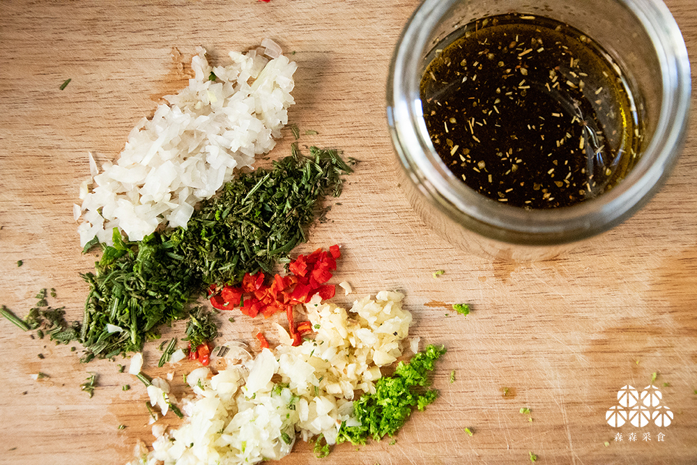 市售烤肉醬吃起來較重鹹,身體負擔大,自製橄欖油烤肉醬健康又零負擔,有別於醬油味,新鮮的新香料讓您吃得巧又安心喔!