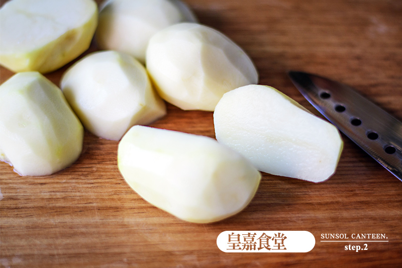 1、將馬鈴薯洗淨去皮(也可以不去皮)切成差不多一樣大小。
