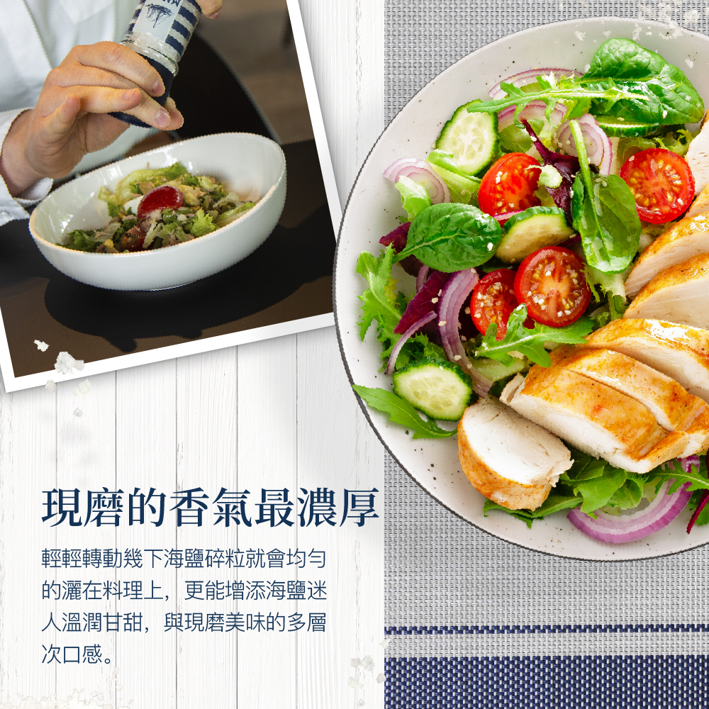 .比利時海鹽職人悉心手採.富含海洋微量礦物質.口感圓潤不死鹹,尾韻回甘風味迷人.無額外加碘,平衡外食營養攝取.獲猶太潔食與多項國際食品認證