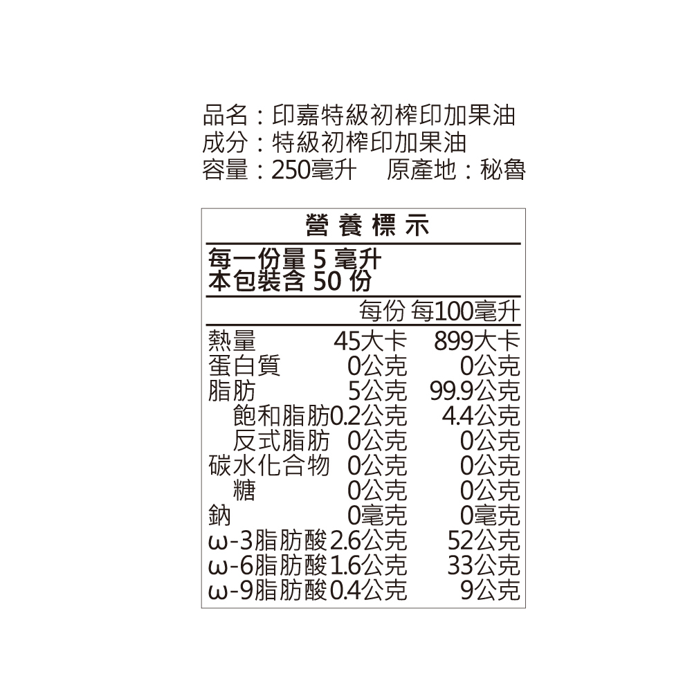 | 品名 | 印嘉 Oro del Inca特級初榨印加果油 250ml |